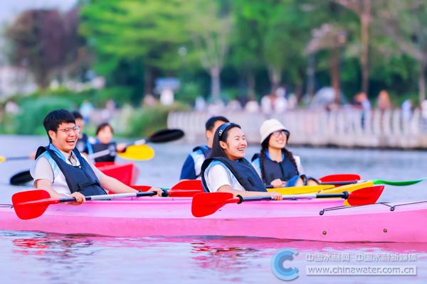 3月22日,广东省深圳市茅洲河燕罗湿地公园内,深圳市水务局与深圳市气象局联合举办“世界水日·中国水周”及世界气象日主题活动。活动现场,茅洲河水经济试点项目正式签约,该项目是深圳市水经济市场化探索成功落地的“第一单”,项目未来将以茅洲河水面为核心载体,打造集治水宣传、休闲消费、地标打卡于一体的水经济特色场景,计划于今年10月全面开园。图为活动当天,市民积极体验桨板、皮划艇等水上项目。