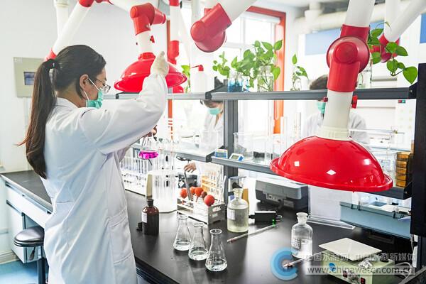 曲阜市南泉水厂工作人员正在对出厂水的水质进行检测