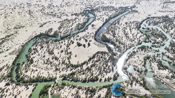 日前,我国最长内陆河——新疆塔里木河启动第27次向下游生态输水工作。来自大西海子水库的水流奔腾而下,为下游沿岸胡杨、红柳等植被送去春日的滋养。图为水流通过塔里木河下游河道。