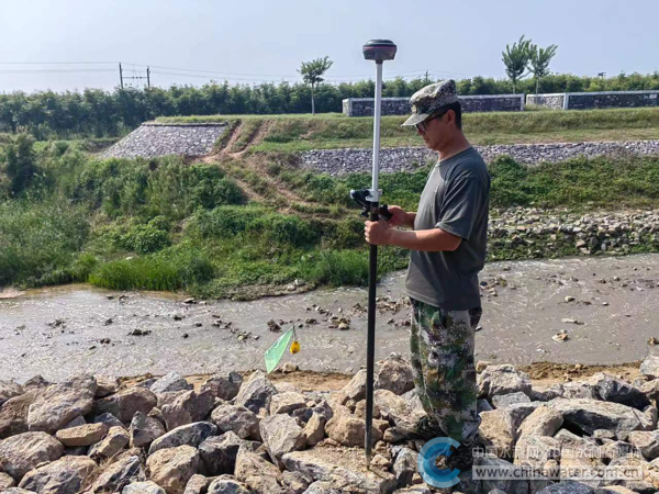 杨光在黄河下游孟州段进行施工测量
