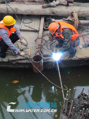 中国水利网站2015年6月10日讯 今年6月是全国第14个“安全生产月”,在江苏省盐城市城市河道小洋河整治工地上,生产作业现场设立醒目的“安全标语”,水上作业人员全部佩戴安全帽、身穿救生衣,安全员目不转睛地监督着施工,施工单位认真落实各项水上作业安全措施,确保施工安全。