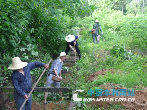 6月24日下午,江西省吉安市青原区水务局党员志愿者服务队一行20多人顶着炎炎烈日,来到白云山工程青原区灌区岗头支渠,清淤整治淤塞地段,恢复渠道通水。志愿者服务队累计整治渠道近300米,完成土方30多立方米。