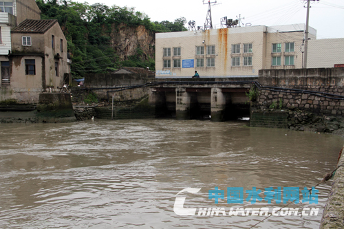 中国水利网站5月10日讯 (通讯员 江文辉)受连日强降雨影响,内河水位出现上涨,为防止低洼地段产生内涝,5月10日中午12时,浙江省温岭各沿海涵闸开启闸门,全力泄洪。