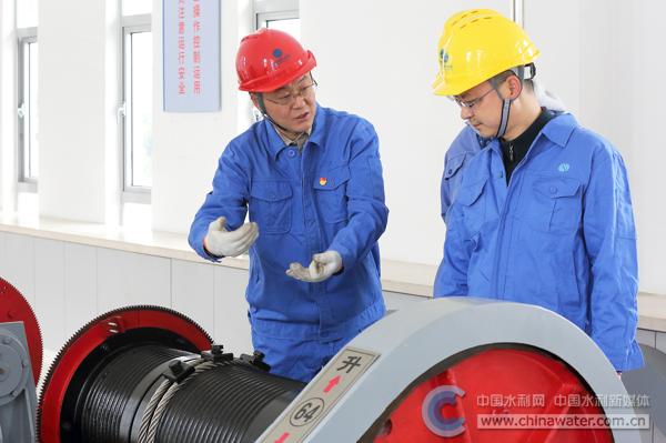 陈宇潮(左一)对万福闸启闭设备进行隐患排查