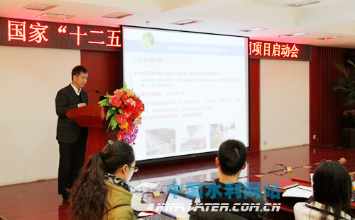 会议讨论部署了项目(课题)实施工作,各项目(课题)汇报研究与示范工作的实施方案和时间安排;讨论课题实施相关问题。国务院南水北调办环保司副司长(项目行政负责人)刘国华、国家水专项办有关同志及项目技术负责人中国水利水电科学研究院王浩院士到会并讲话。