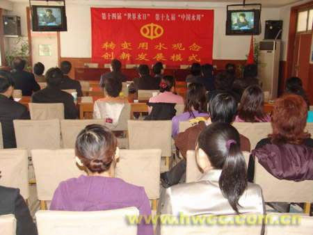上午9时,在局机关综合楼三楼会议室,组织局机关驻地全体职工观看了《人、水、法》电视系列片。